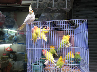 There is lots to buy at this market, but many bird enthusiasts bring their feathered friends along to get "air". Sometimes you'll even see old men "walking" their birds still safe in their cages.